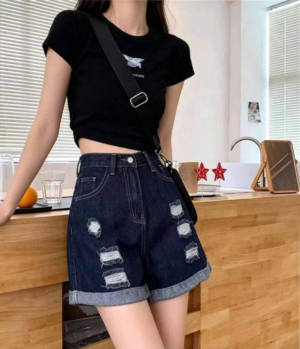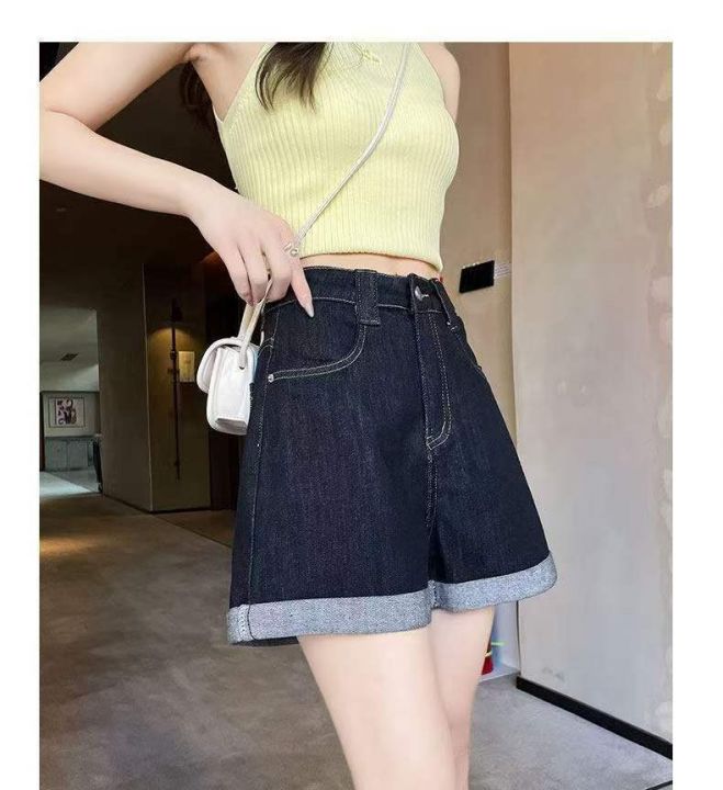 夏季新款网红复古蓝洗水棉阔腿牛仔短裤,独立包装带腰...