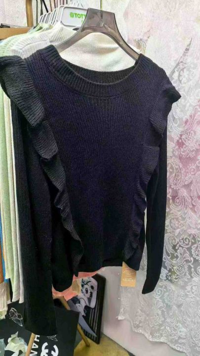 春季新款复古法式宽松百搭显瘦木耳边设计款圆领套头毛衣,独立包装带吊牌,码数S--XL码,面料软糯厚实弹力大,164件,全清6.9元超低价秒杀!