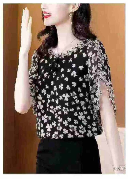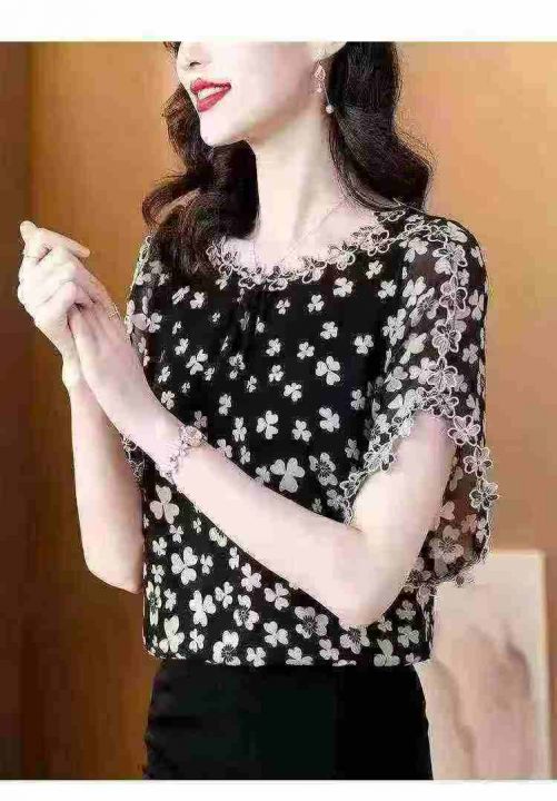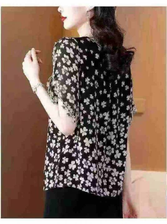 2026夏季新款时尚印花刺绣花边领短袖上衣宽松版 数量:234条 码数:3XL-6xL码 独立包装(货号401#5)