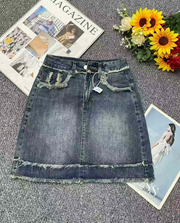 夏季新款毛边设计款复古百搭高腰洗水棉牛仔半身裙套,独立包装带吊牌,码数S-2XL码,852件,全清10.8超低价秒杀!分货加一!