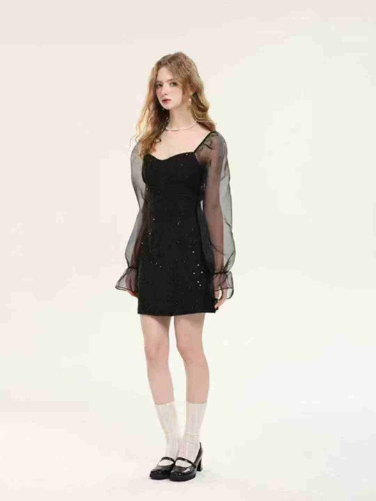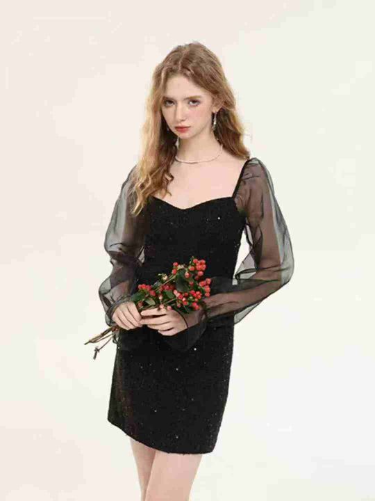 ❄️法式小礼服高端轻奢黑色小香风亮片晚宴聚会生日成...