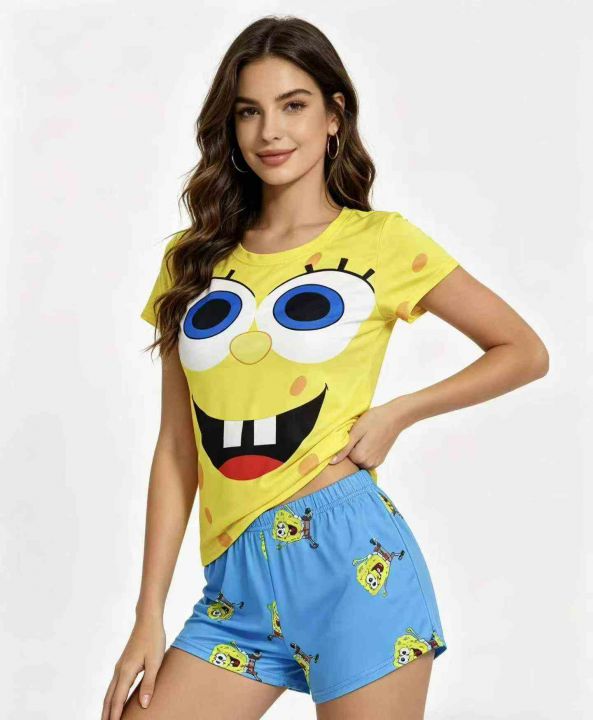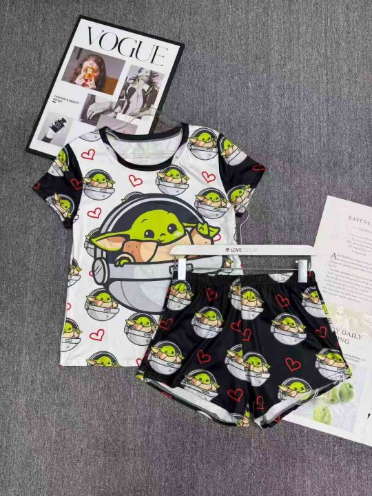 电商仓回收457套跨境独立站爆款休闲女士卡通印花短袖短裤套装,码数S-2XL。面料柔软有弹性,独立包装,分货➕1