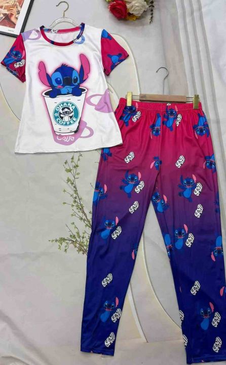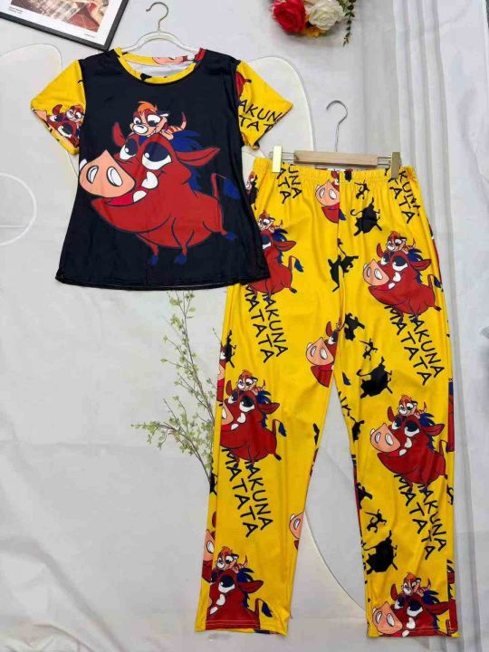 电商仓回收292套跨境亚马逊时尚印花休闲短袖长裤套装,码数S-2XL。面料柔软舒适,图案卡通可爱。独立包装。分货➕1