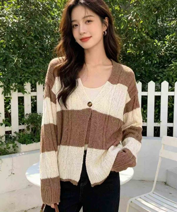 春秋新款时尚洋气V领显瘦一粒扣麻花针织开衫,独立包...