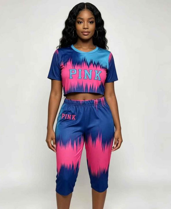 欧美短袖时尚短裤套装,整款三色,数量100套左右,码数S-2XL,品质好,有独立包装。