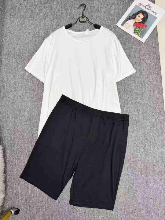 夏季短袖t恤圆领纯色运动跑步男女两件套套装,图片款,数量2000套左右,码数L-4XL,品质好,有独立包装。