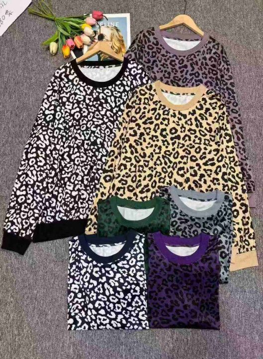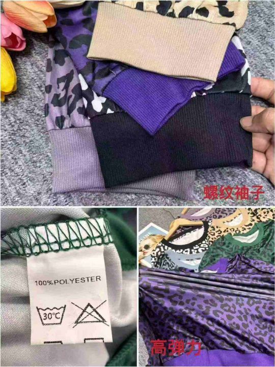 时尚气质豹纹印花撞色圆领长袖打底衫上衣,独立包装,整款多色,码数S-5XL,数量200件
