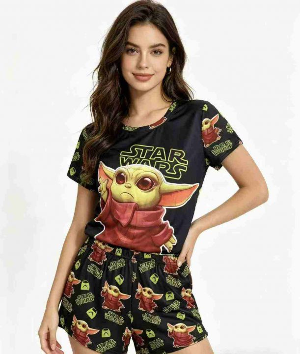 电商仓回收457套跨境独立站爆款休闲女士卡通印花短袖短裤套装,码数S-2XL。面料柔软有弹性,独立包装,分货➕1