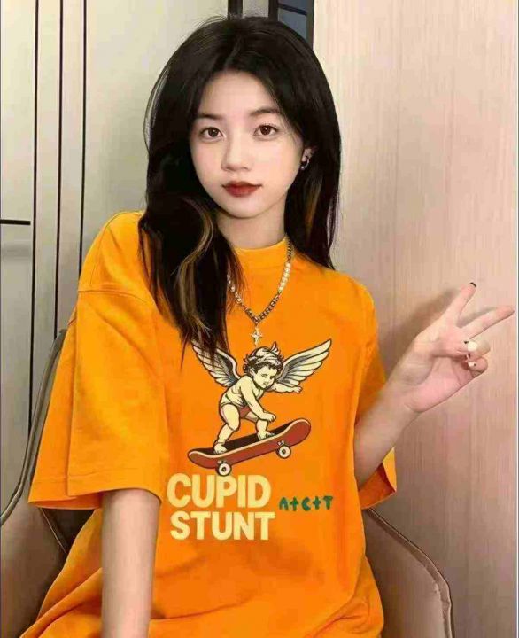 电商仓回收150件夏季短袖男女款宽松潮流橙色印花情侣装短袖T恤,码数S-2XL。后领包边到肩,版型宽松,上身舒适。独立包装,分货➕0.5