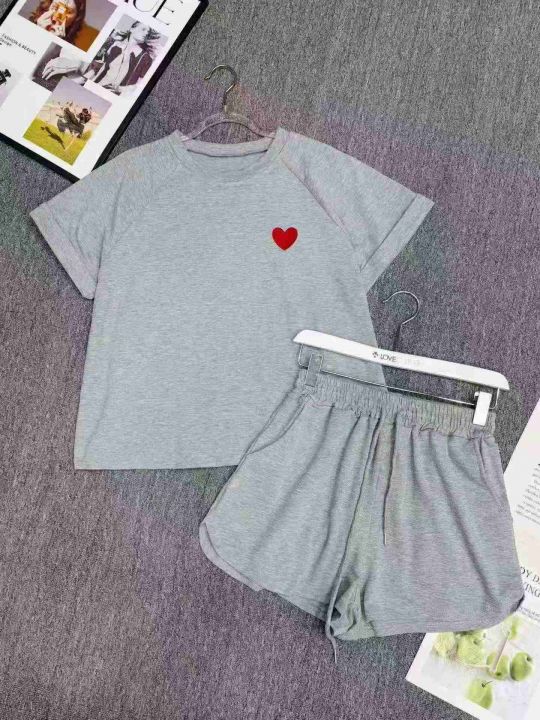电商仓回收54套韩系爱心刺绣短袖短裤休闲套装,码数XS-L。两件套性价比超高,独立包装捡漏清