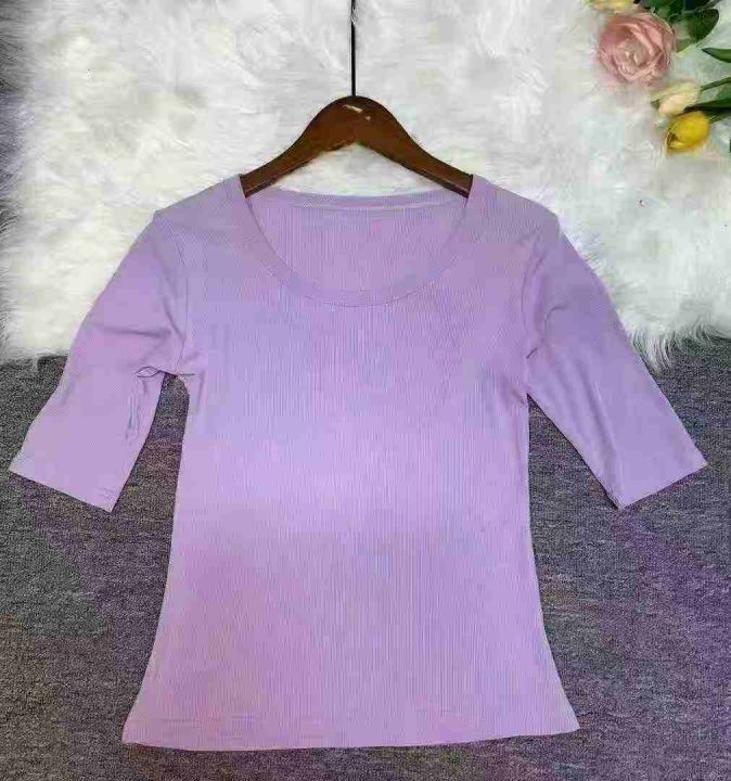 夏季新款五分袖U领螺纹t恤百搭修身显瘦时尚中袖打底衫...