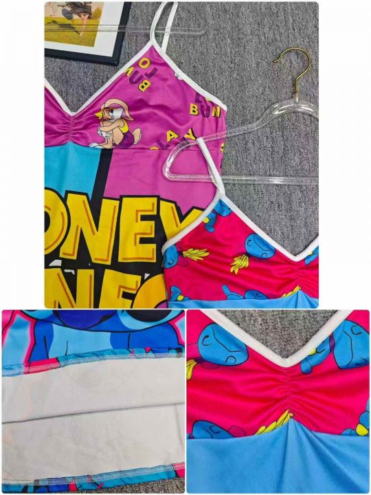 电商仓回收141件跨境欧美热卖夏季新款女士卡通印花吊带短裙,码数S-2XL。面料柔软有弹性,独立包装。分货➕0.5