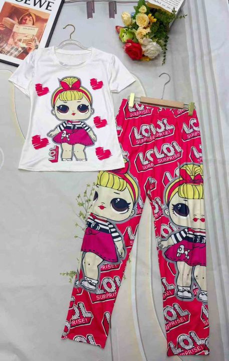 电商仓回收292套跨境亚马逊时尚印花休闲短袖长裤套装,码数S-2XL。面料柔软舒适,图案卡通可爱。独立包装。分货➕1