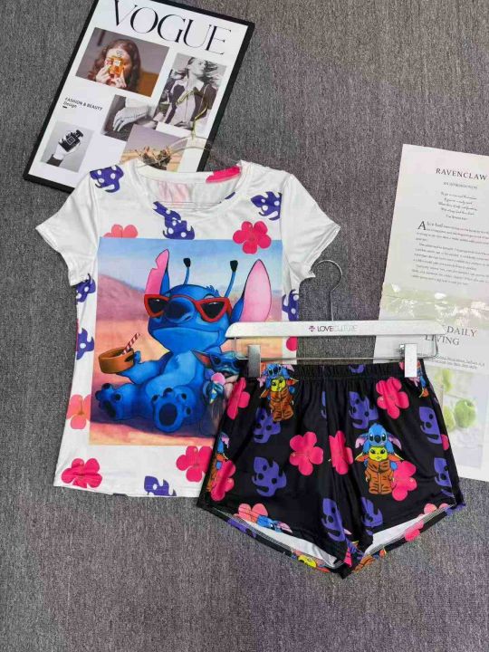 电商仓回收457套跨境独立站爆款休闲女士卡通印花短袖短裤套装,码数S-2XL。面料柔软有弹性,独立包装,分货➕1