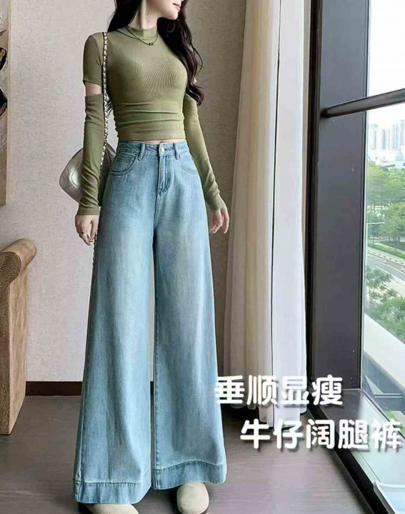 春季新款网红设计款直筒阔腿大喇叭牛仔裤,独立包装带...