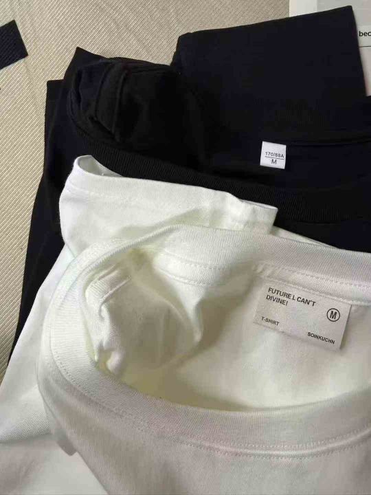 6.8清200件200G重磅纯棉黑白纯色宽松长袖t恤男夏季圆...