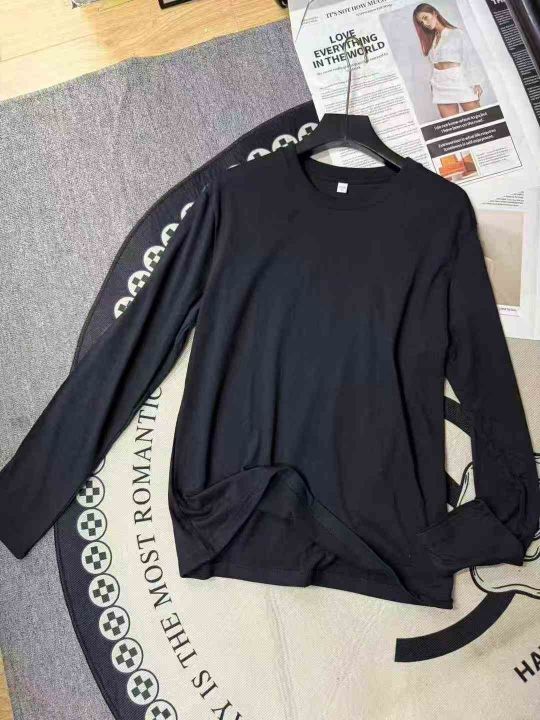 6.8清200件200G重磅纯棉黑白纯色宽松长袖t恤男夏季圆领纯色打底衫长袖体恤潮 码数M-3XL
