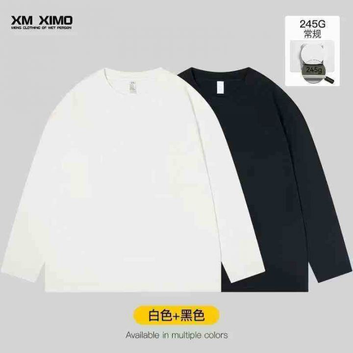 6.8清200件200G重磅纯棉黑白纯色宽松长袖t恤男夏季圆领纯色打底衫长袖体恤...
