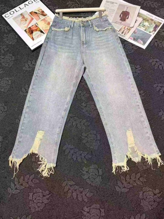 破洞牛仔裤女直筒新款九分夏季流苏开叉显瘦裤子 303件,全清11.8元,分货12.8元,码数/S/M/L/XL,正品独立包装,每件带有原吊牌。
