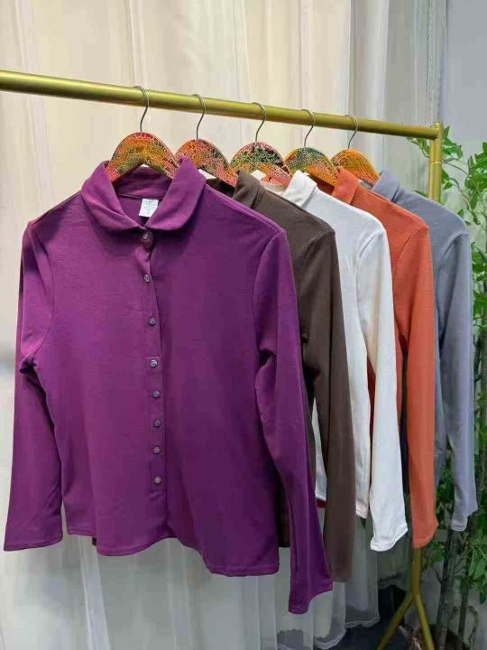 高档纯棉时尚大码长袖衬衫\'205件春秋打底衫女新款翻领上衣宽松洋气体恤\'独立包装\'码数M-2XL分货➕1,货号001#30