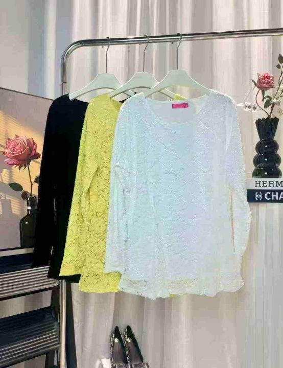 220件春季复古中长款下摆收褶设计圆领蕾丝风长袖大码T恤女高级感百搭蕾丝衫大码女装,图片有加绒和不加绒的,高弹力带内衬,尺码M-4XL,福利秒杀价3.9 不分货