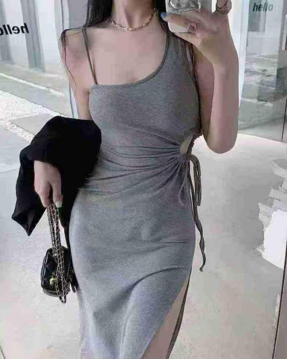 斜肩吊带连衣裙81件6.5,抽褶露腰,下摆开叉设计,肩...