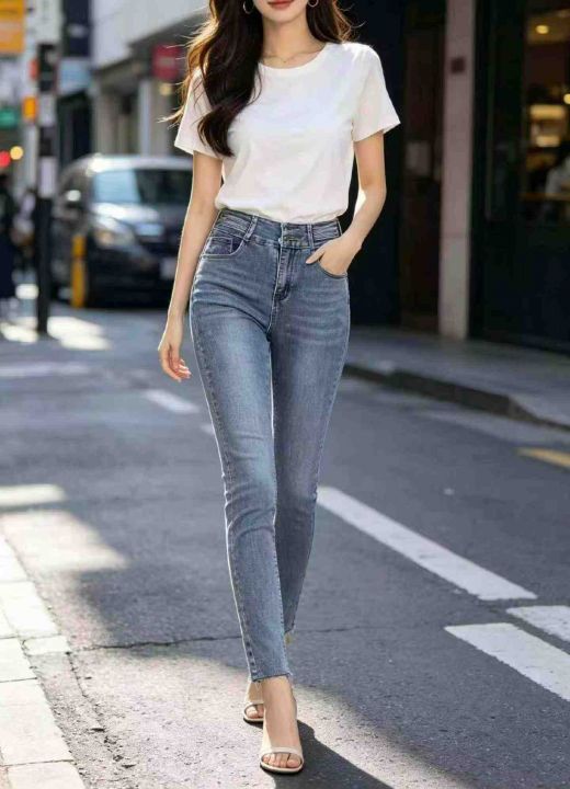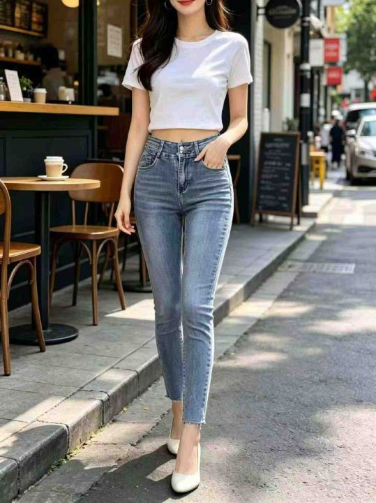春季新款高弹力复古复古设计款弹力牛仔小脚裤,独立包...