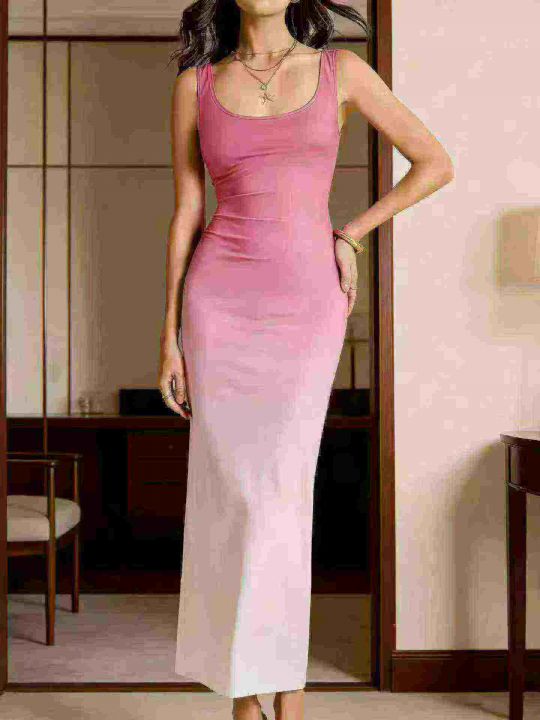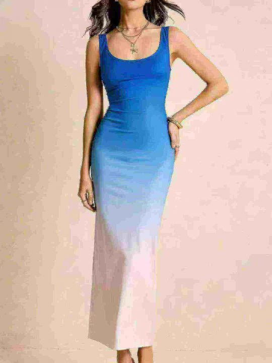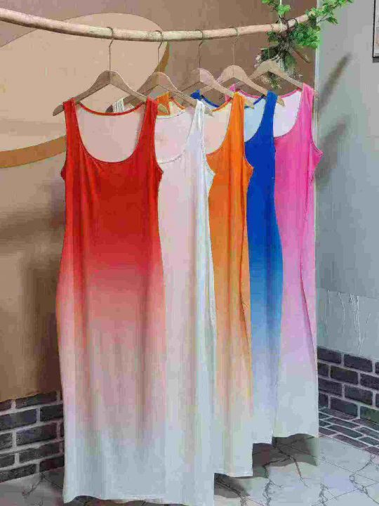 外贸渐变色大长款连衣裙,清6.8
