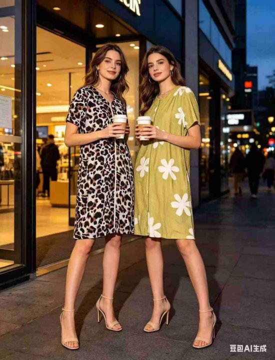 全清价6.8休闲长拉链印花气质宽松前开叉连衣裙,独立...