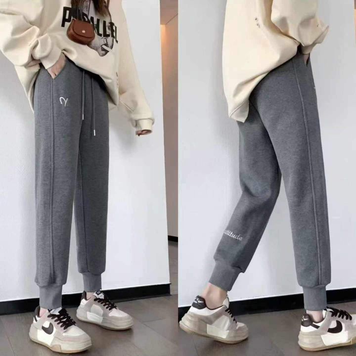 [月亮]:秋冬加绒小个子抽绳休闲束脚卫裤