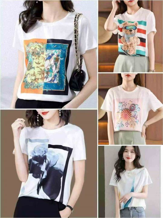 夏季热卖天丝冰凉速干韩版百搭短袖印花上衣,独立包装,后领包边,图案丰富,码S一XL数,数量2000,分货加1