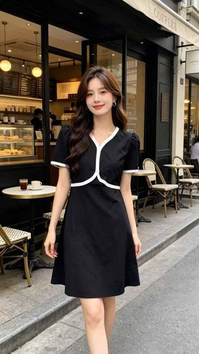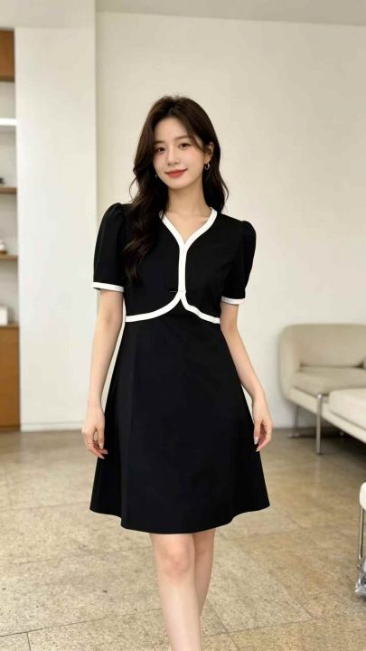 ① 小香风名媛拼接v领假两件宽松显瘦连衣裙!独立包装,码数S-2XL,数量100件左右,全清5.9元