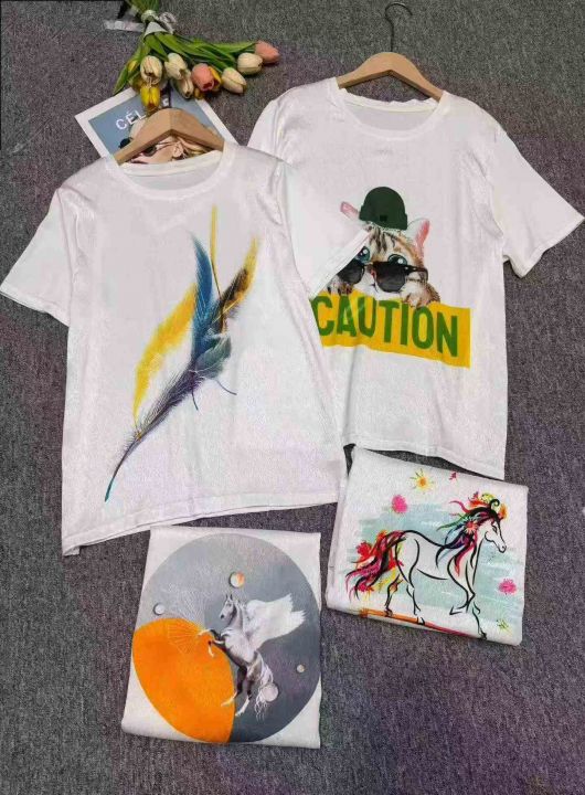 夏季热卖天丝冰凉速干韩版百搭短袖印花上衣,独立包装,后领包边,图案丰富,码S一XL数,数量2000,分货加1