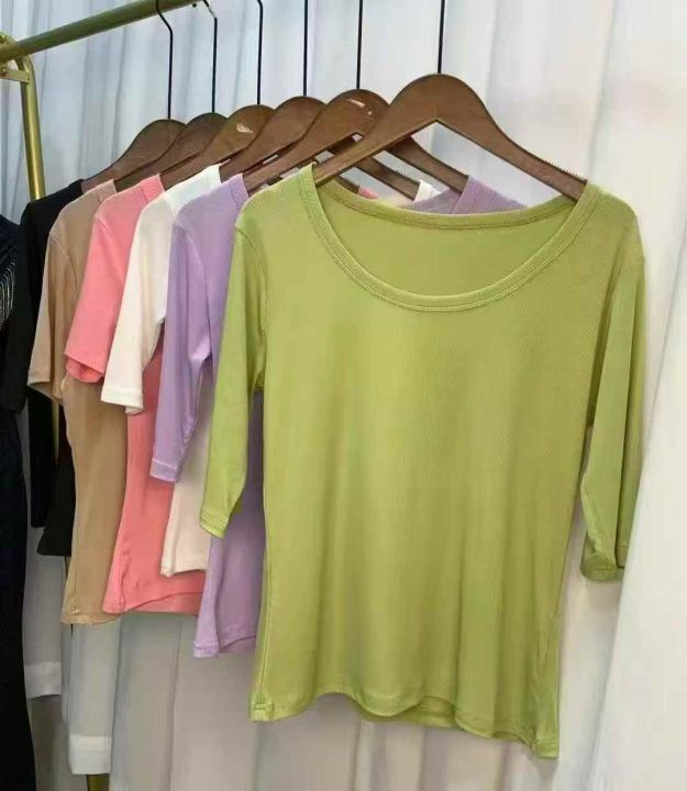 夏季新款五分袖U领螺纹t恤百搭修身显瘦时尚中袖打底衫994件,s~2XL独立包装,货品干净整洁,全清福利价5.8元