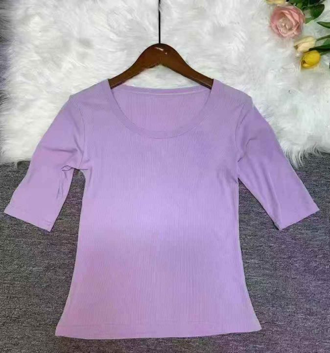 夏季新款五分袖U领螺纹t恤百搭修身显瘦时尚中袖打底衫...