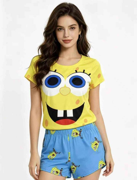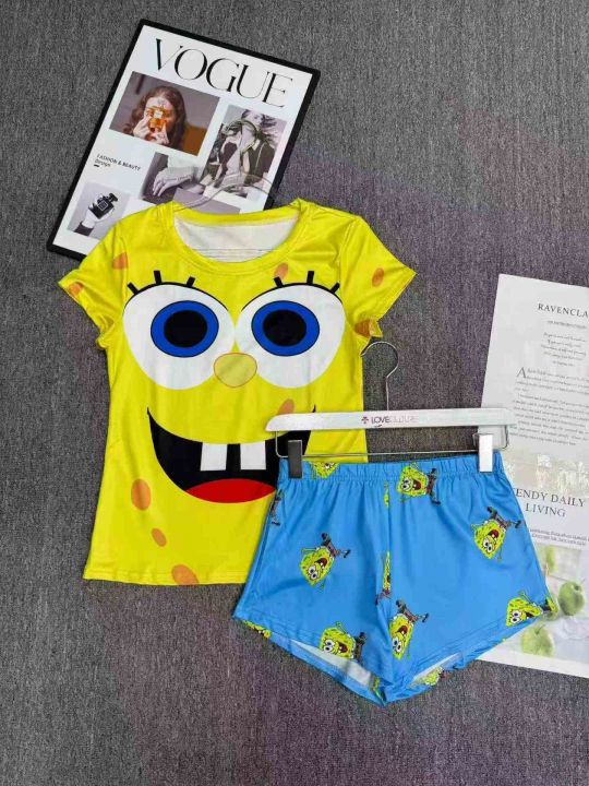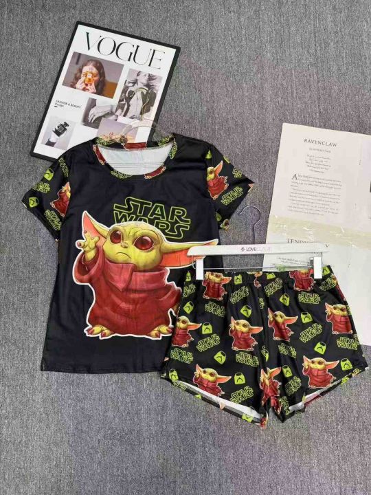 电商仓回收457套跨境独立站爆款休闲女士卡通印花短袖短裤套装,码数S-2XL。面料柔软有弹性,独立包装,分货➕1