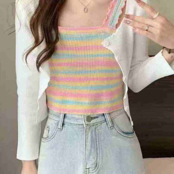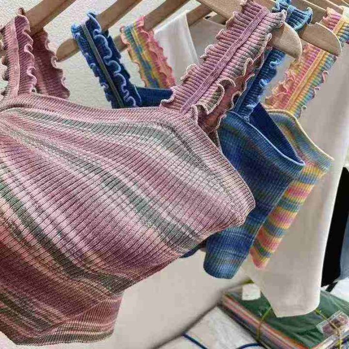1478件针织吊带背心,条纹木耳边设计,一款7色,超弹...