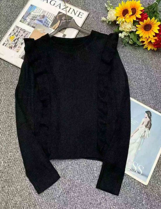 春季新款复古法式宽松百搭显瘦木耳边设计款圆领套头毛衣,独立包装带吊牌,码数S--XL码,面料软糯厚实弹力大,164件,全清6.9元超低价秒杀!