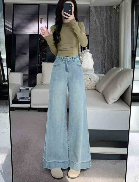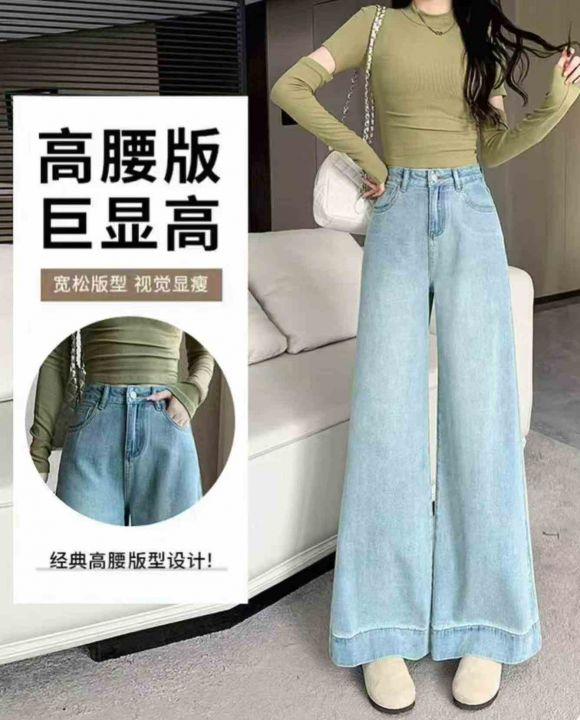 春季新款网红设计款直筒阔腿大喇叭牛仔裤,独立包装带...