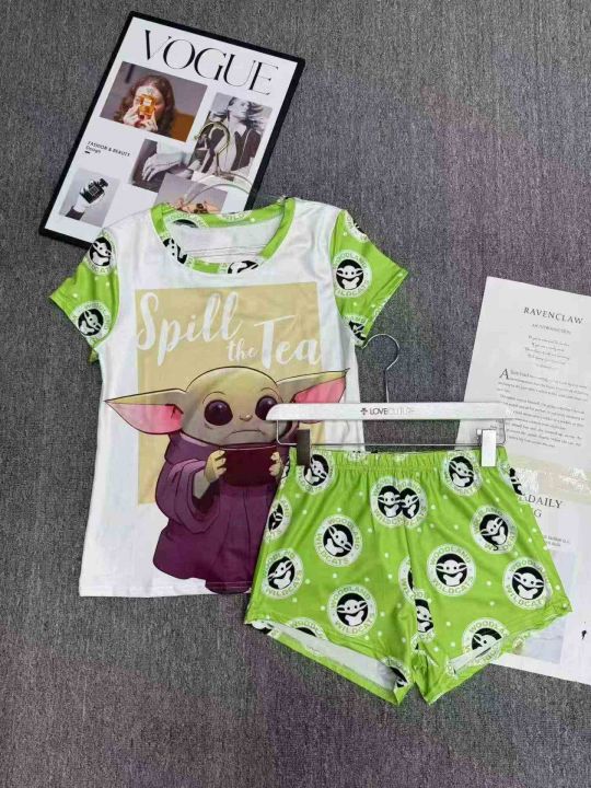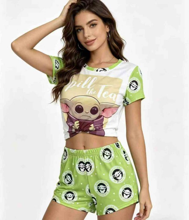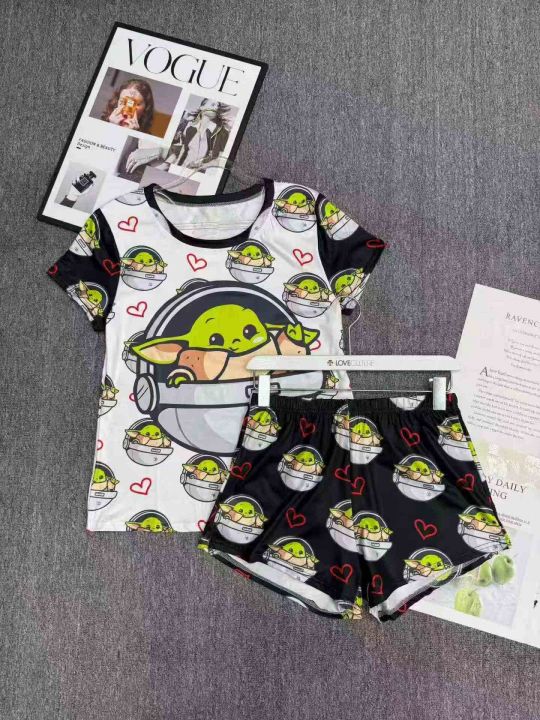 电商仓回收457套跨境独立站爆款休闲女士卡通印花短袖短裤套装,码数S-2XL。面料柔软有弹性,独立包装,分货➕1
