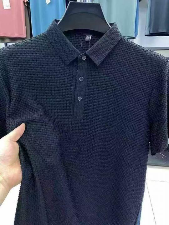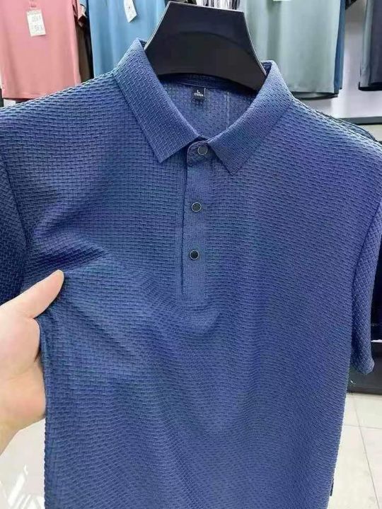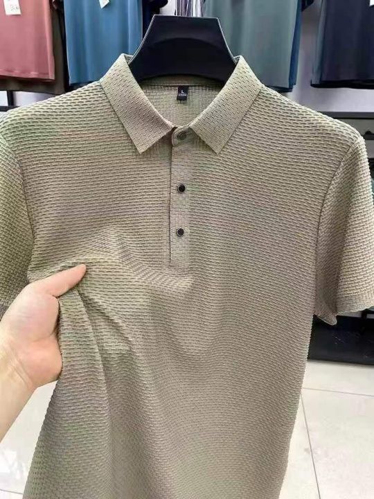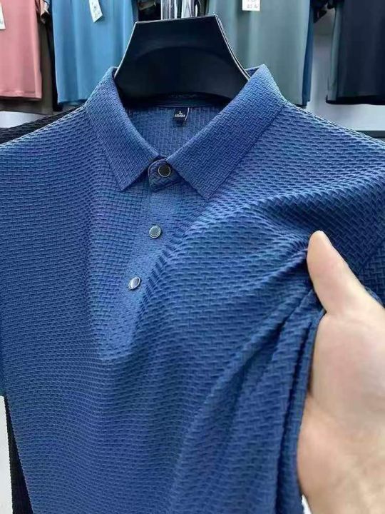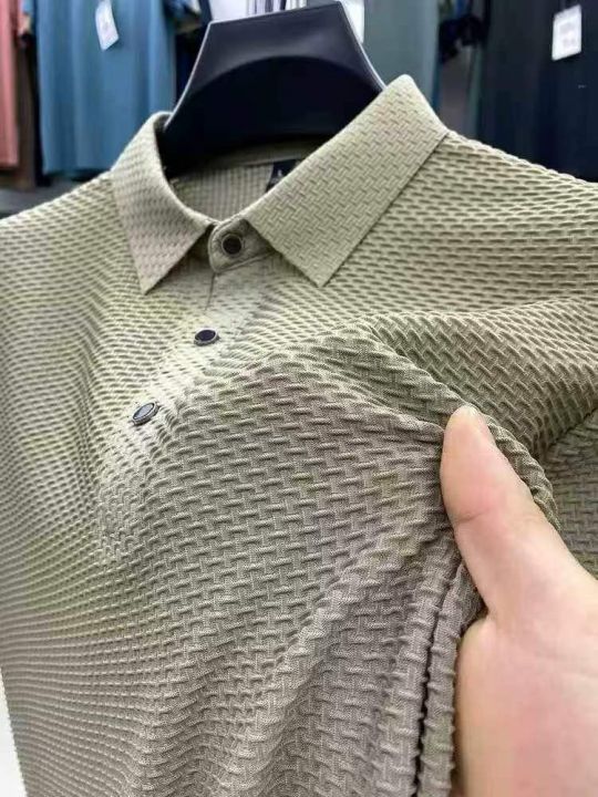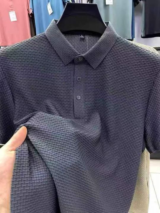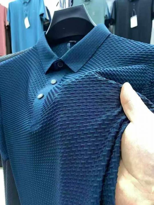 男装锦纶冰丝polo衫男短袖新款夏季薄款透气中年夏装T恤衫,超弹力