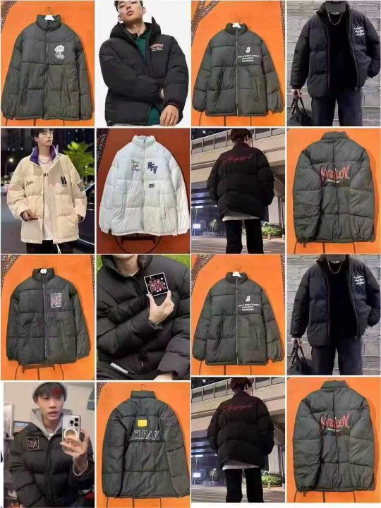 男装潮牌宽松棉服休闲外套,版型宽松,都是潮流款,基本黑白两个经典色系,图案超级多,不仅限图片视频款,单面和AB面印花,混批配货,100件起25.8