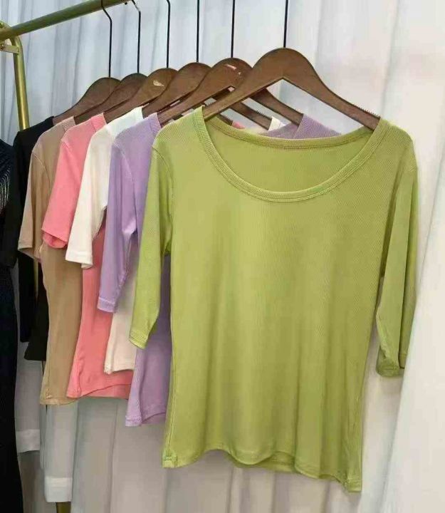 夏季新款五分袖U领螺纹t恤百搭修身显瘦时尚中袖打底衫994件,s~2XL独立包装,货品干净整洁,全清福利价5.8元