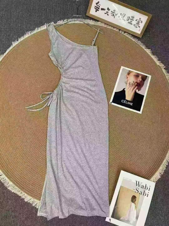斜肩吊带连衣裙81件6.5,抽褶露腰,下摆开叉设计,肩...