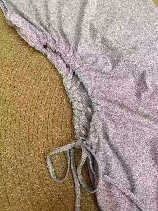 抽褶露腰,下摆开叉设计,