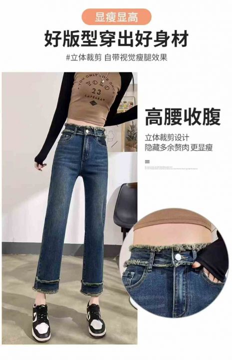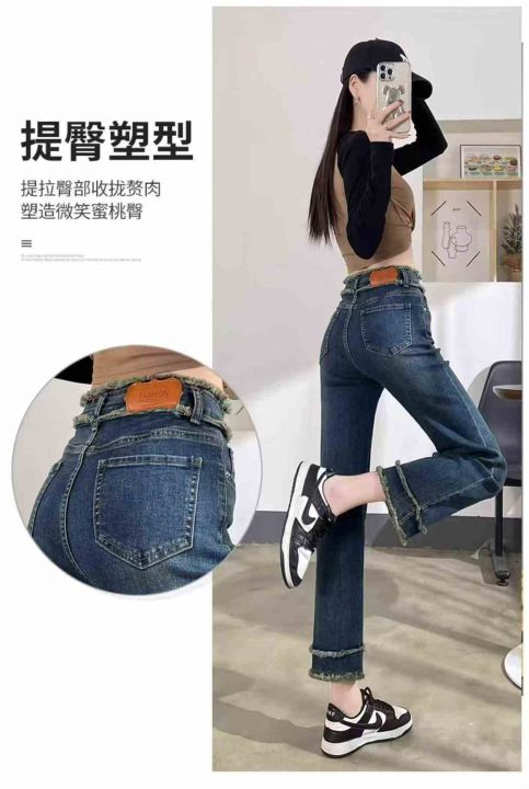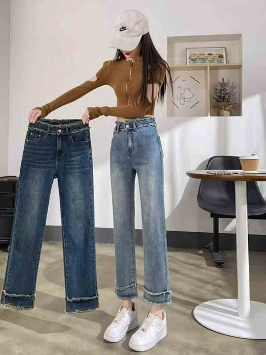 春季新款设计感毛边直筒高腰显高显瘦复古牛仔烟管裤,...