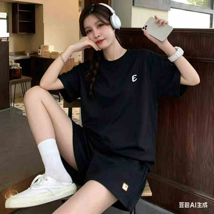 高级感短袖短裤两件套女士夏季大码欧货时尚洋气休闲穿搭套装,独立包装,码数1-6码,数量413套,分货加1 独立包装(货号420#19)