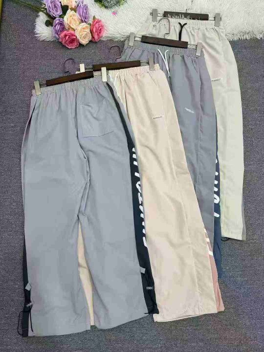 400条,港风休闲裤女夏季新款宽松阔腿裤薄款抽绳束脚拼接学生运动裤,独立包装,码数S-3XL,全清7.8元,分货+0.5