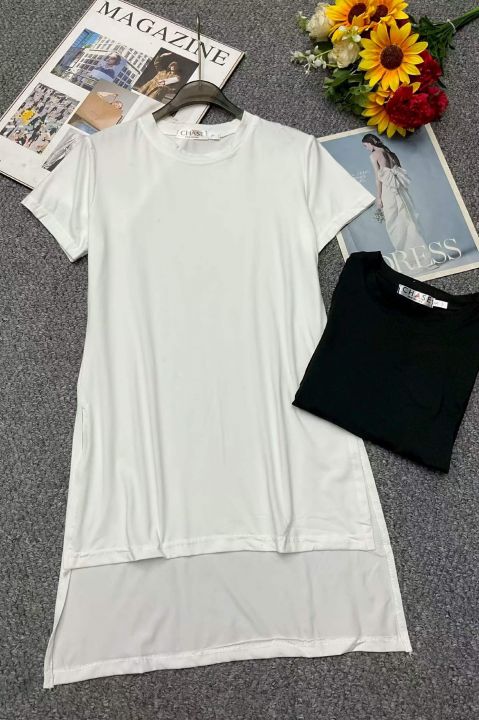 夏季韩版新款弹力修身性感开叉中长款圆领短袖纯色T桖,独立包装白色为主,码数S-2XL码,470件,全清5.8元超低价秒杀!分货加一!