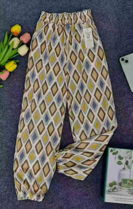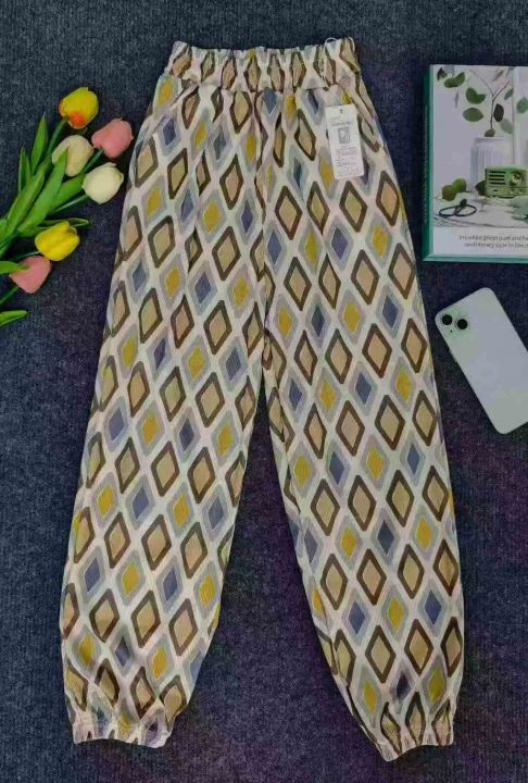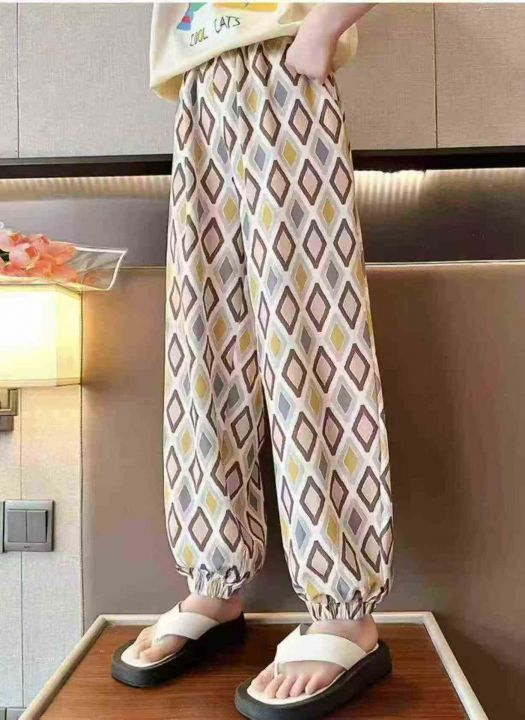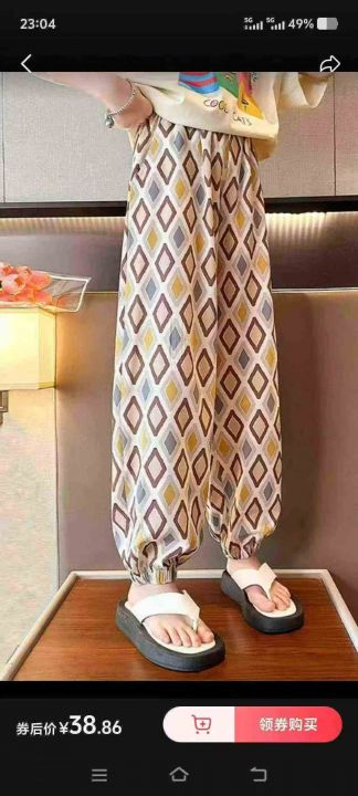 4.8元,中大童时尚印格冰丝裤,面料冰爽丝滑垂感有弹力,98件,2-7码,独立包装吊牌,全清4.8元,不分货